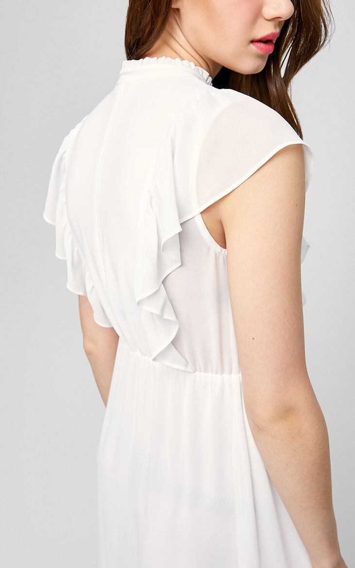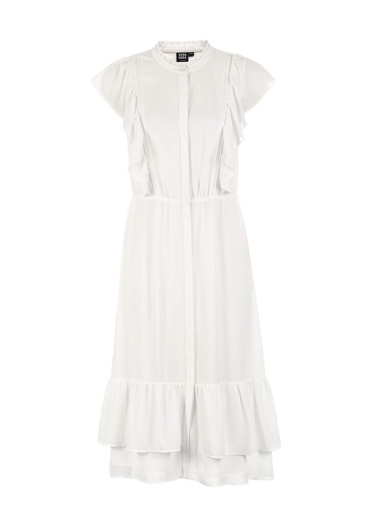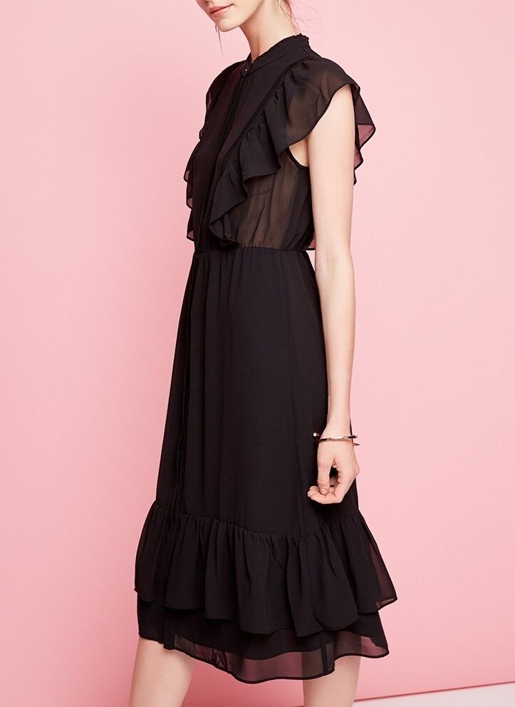 「破格」 ワンピース ノースリーブ フリル フラウンス ミモレ丈 黒 白