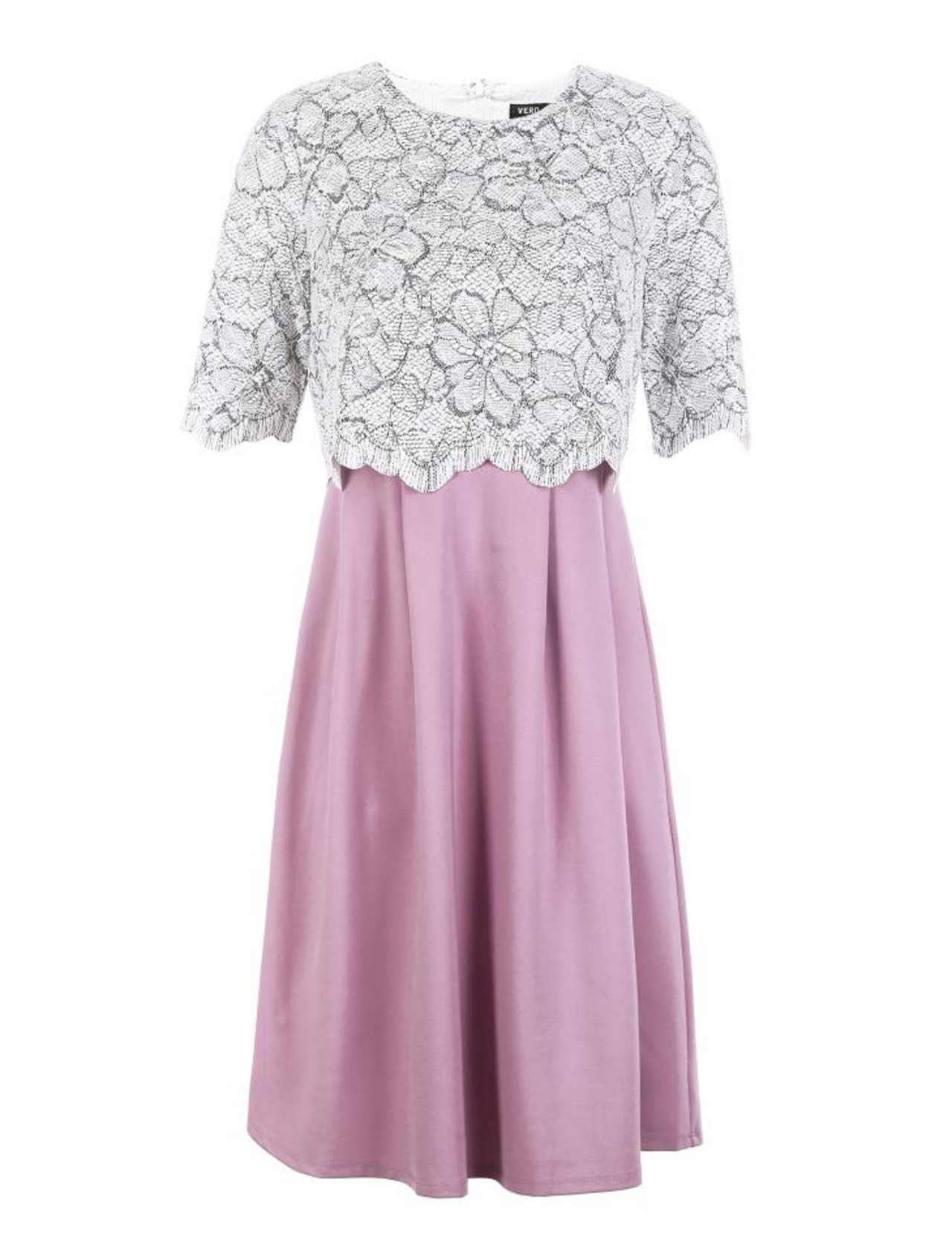 「破格」 ワンピース ニット ラウンドネック 半袖 フラワー 膝丈 食事会