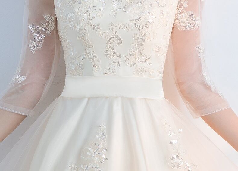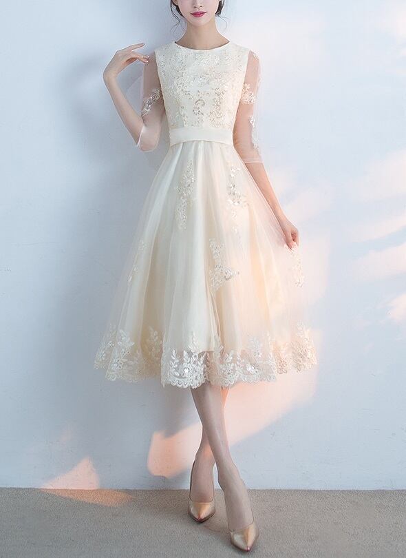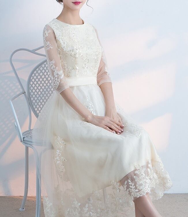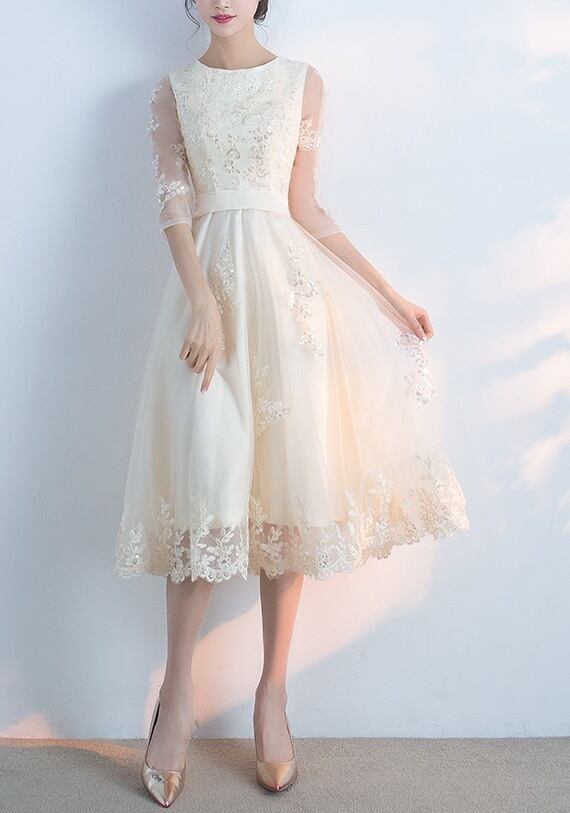 「破格」 ドレス レース 刺繍 五分袖 スパンコール フレア シャンパン