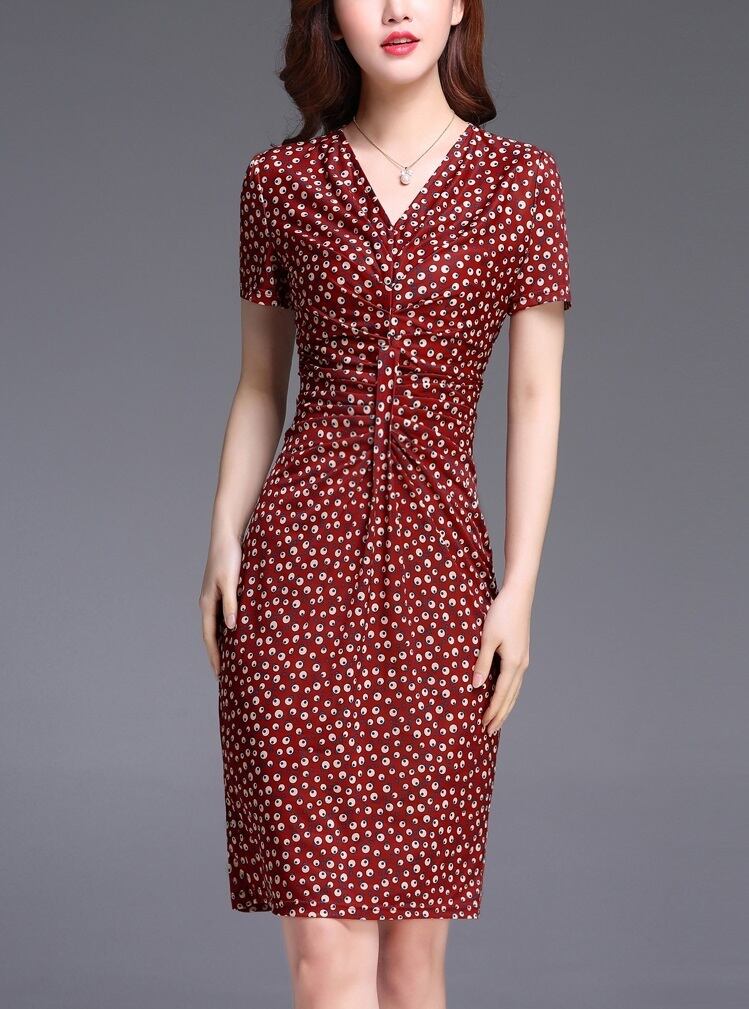 「破格」 ワンピース ニット Vネック 半袖 花柄 タイト 膝上丈 食事会