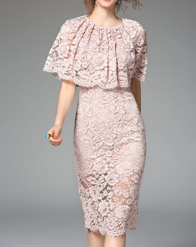 「破格」 レディスワンピース レース 半袖 花柄 膝丈 パーティー