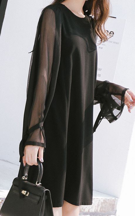 「破格」 レディスワンピース 長袖 透け感 フレア Aライン シンプル