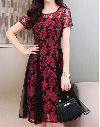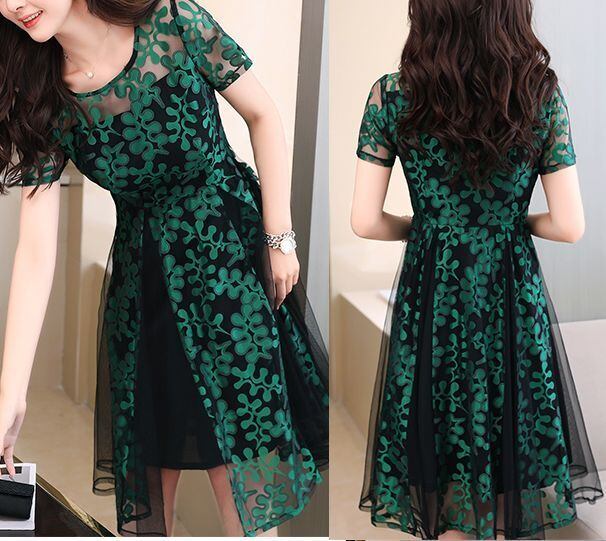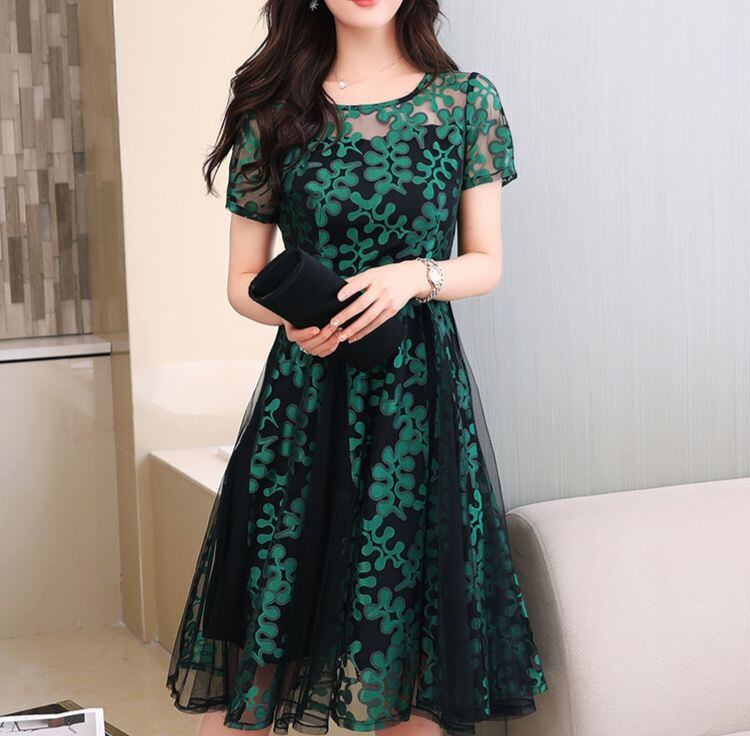 「破格」 レディスワンピース シフォン フレア 半袖 花柄 透け感 お呼ばれ