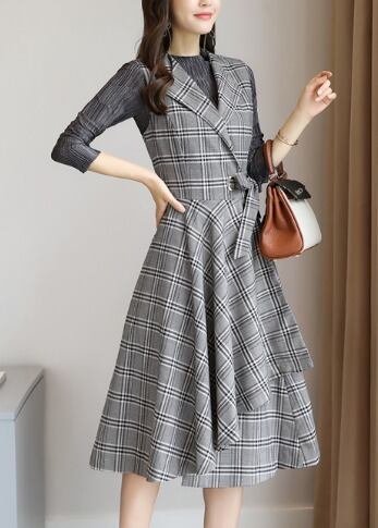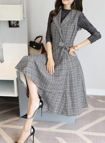「破格」 レディース ワンピース 二点セット チェック 長袖 秋冬 着やせ