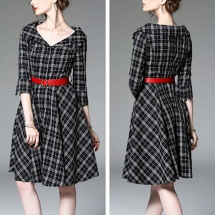 「破格」 ワンピース オシャレ ベルト Aライン Vネック 大人 通勤 デート
