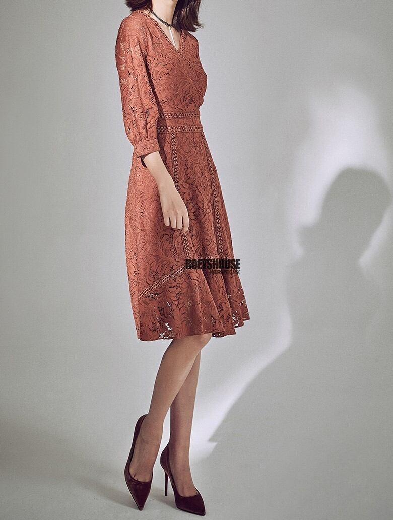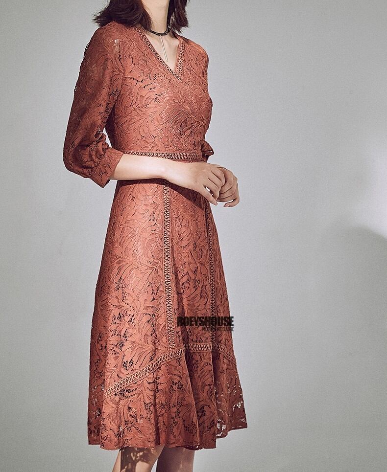 「破格」 ワンピース Vネック レース 透け感 エレガント 秋色 デート