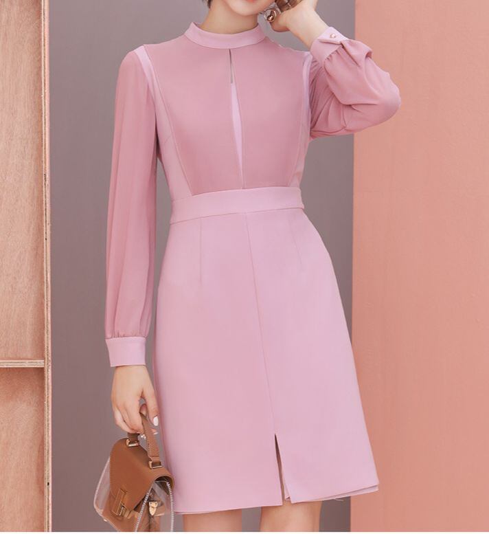 「破格」 レディスワンピース 長袖 シフォン 透け感 通勤 パーティー