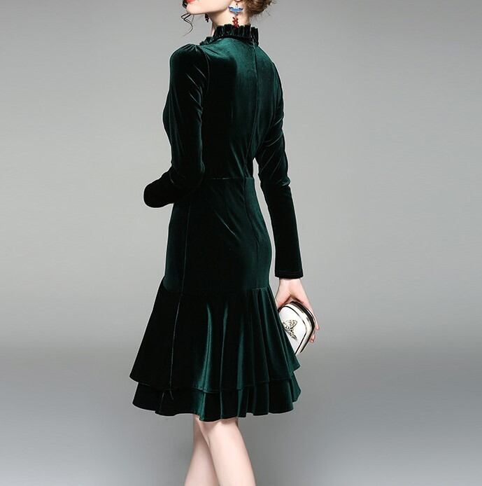 「破格」 ベロア ワンピース マーメイドスカート 秋冬 トレンド オシャレ