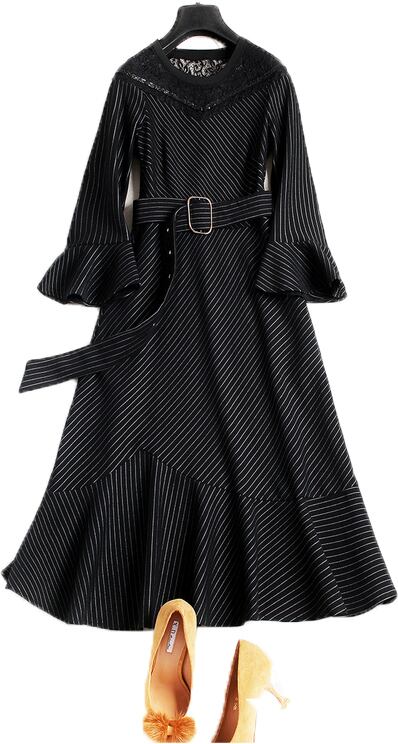 「破格」 秋冬 ストライプドレス レースステッチ 可愛い デート 女子会