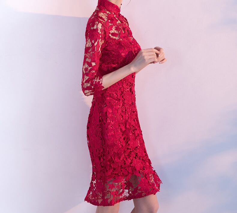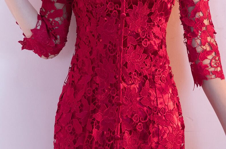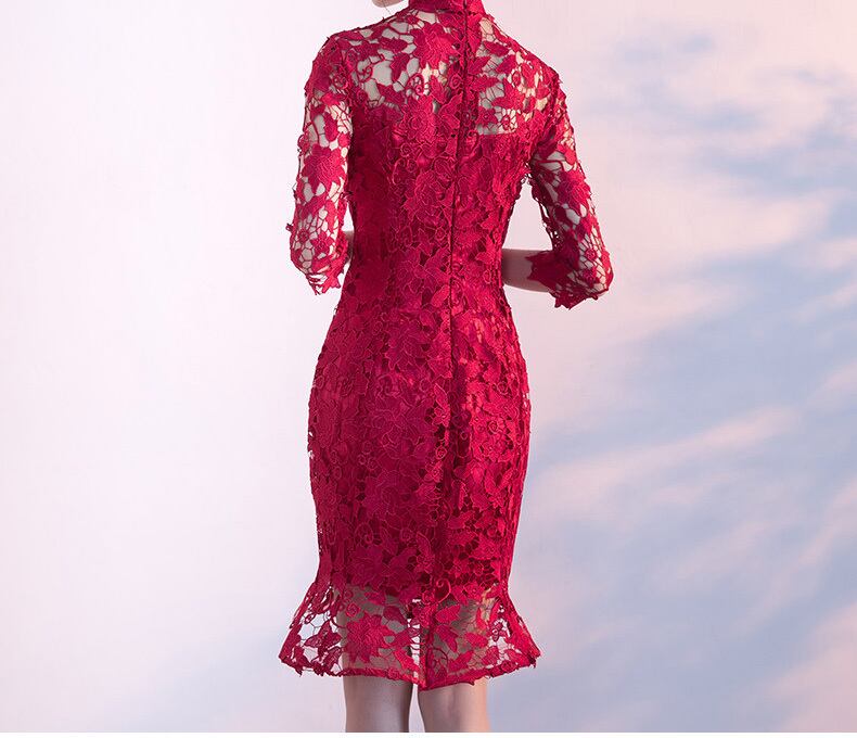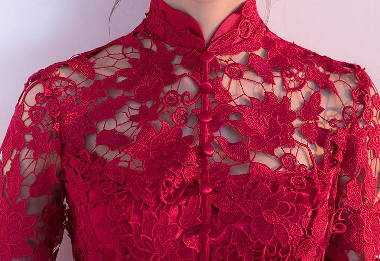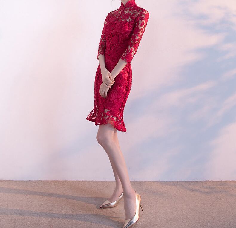 「破格」 ドレス イブニング 赤 チャイナ服 レース 可愛い 披露宴 二次会