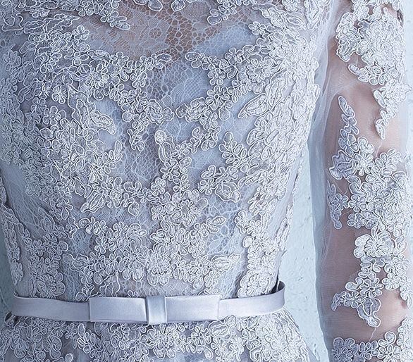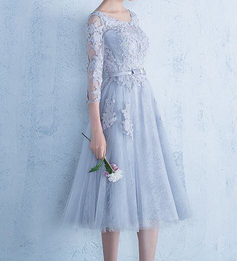 「破格」 ドレス シフォン シースルー 五分袖丈 ミディアム丈 結婚式