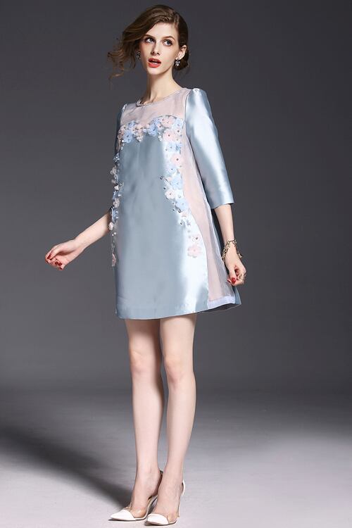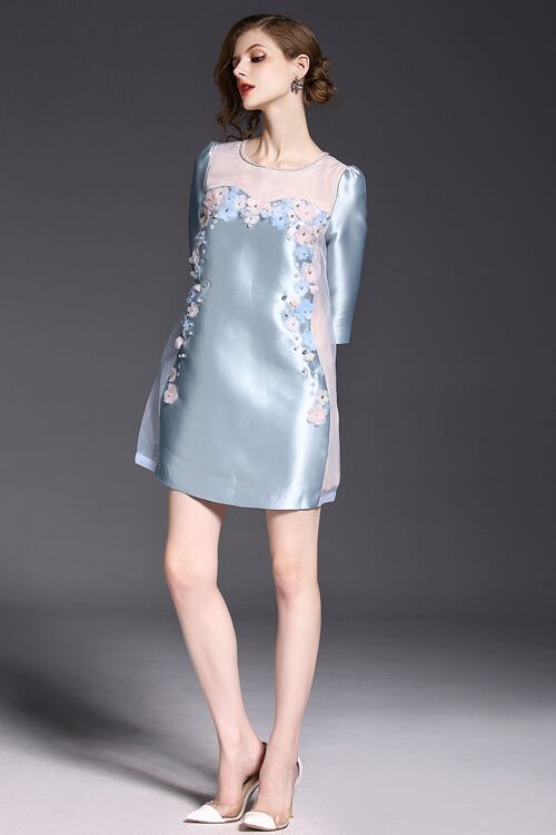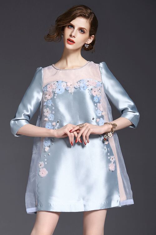 「大特価」 新作♪キュートお花 切替 7分袖 結婚式に ワンピースp1595