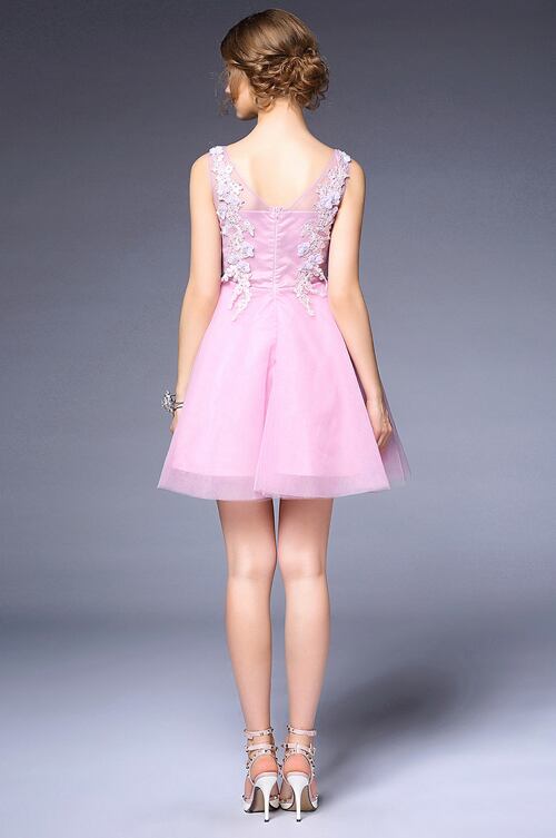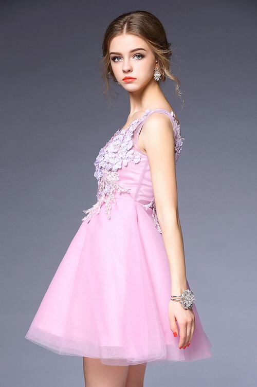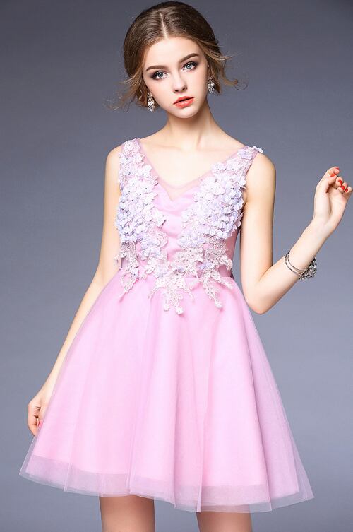 「大特価」 新作♪上質Vネックノースリーブ レースビジュワンピースp1926