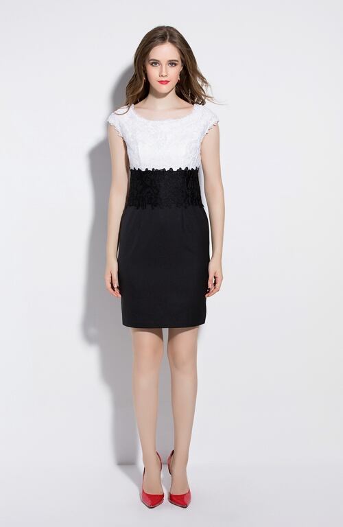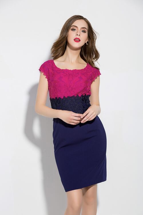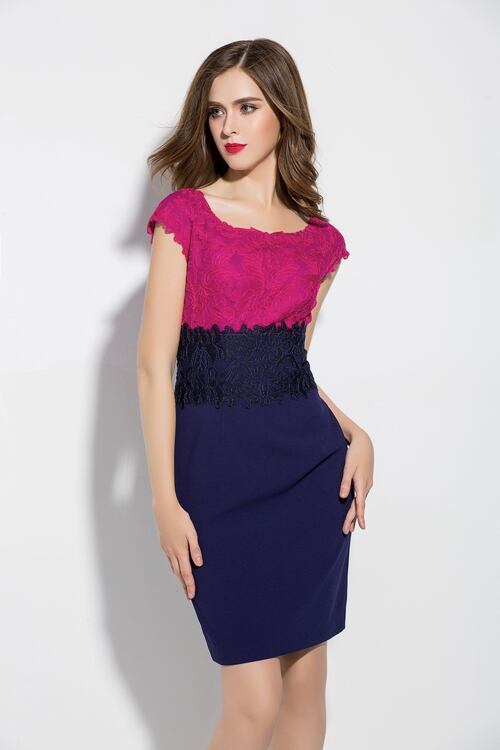 「大特価」 SS新作♪上質 レース刺繍 バイカラー 2色 ワンピースp2040