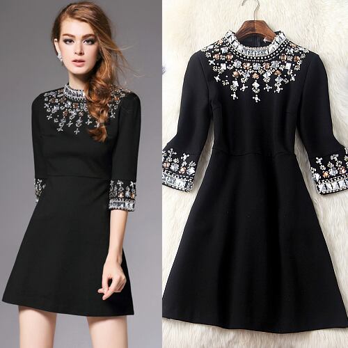 「大特価」 人気♪再入荷 ビジュー 袖付き ワンピースp2088