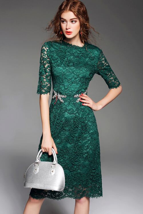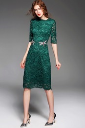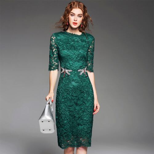 「大特価」 新作♪キュート 総レース 袖付き ビジュー ワンピースp2134