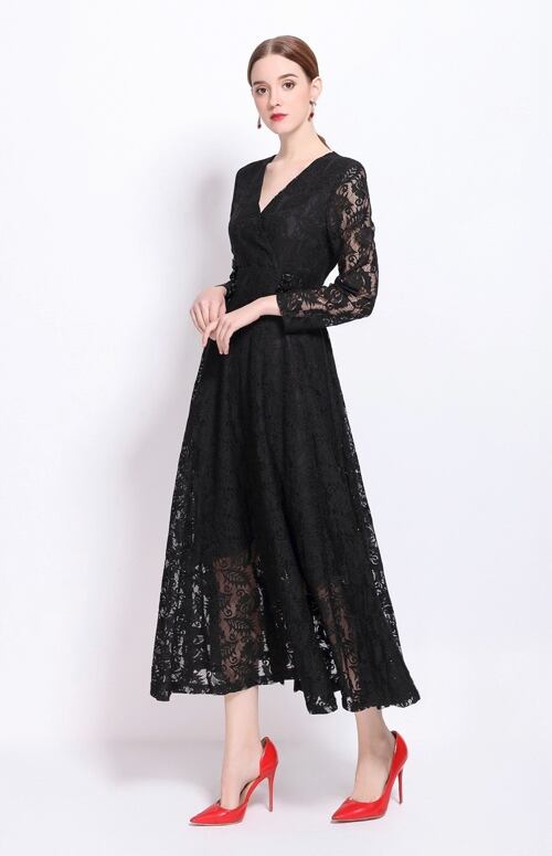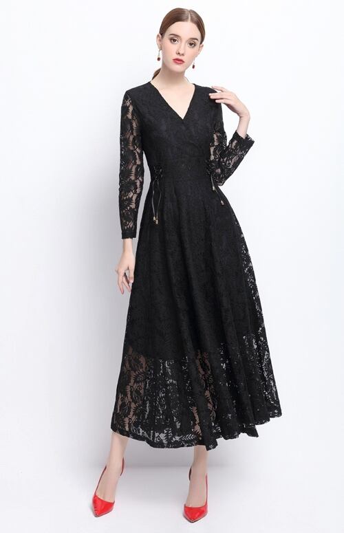 「大特価」 新作♪上品 総レース 7分袖 Vネック 2色 ワンピースA0008