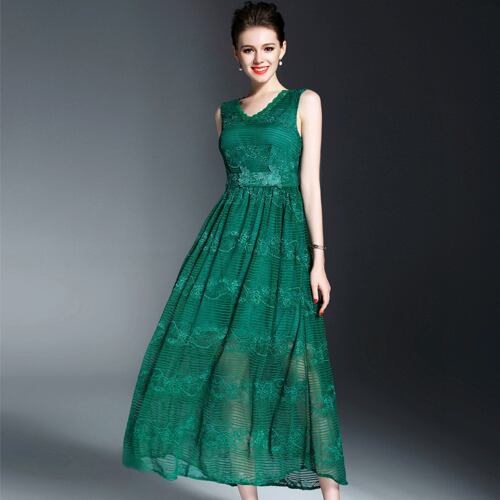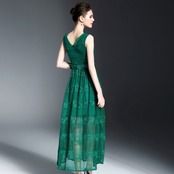 「大特価」 新作♪総レース Vネック ノースリーブ ロング ドレスp2623