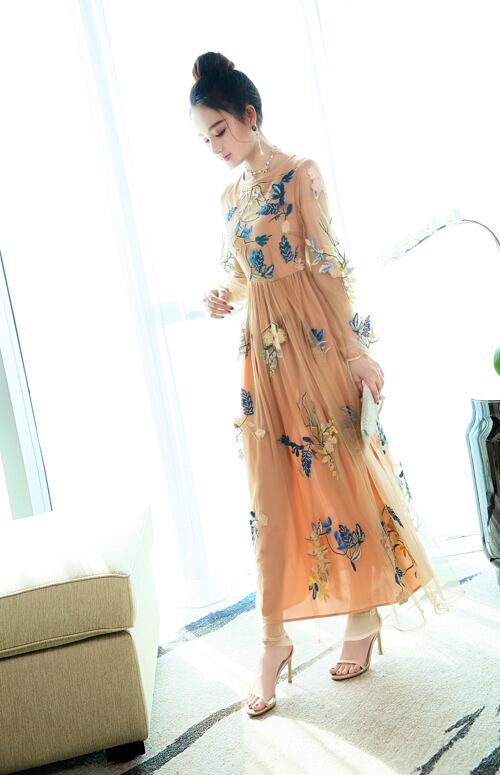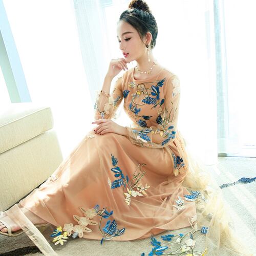 「大特価」 新作 人気商品♪チュール 刺繍 ロングドレスT6581