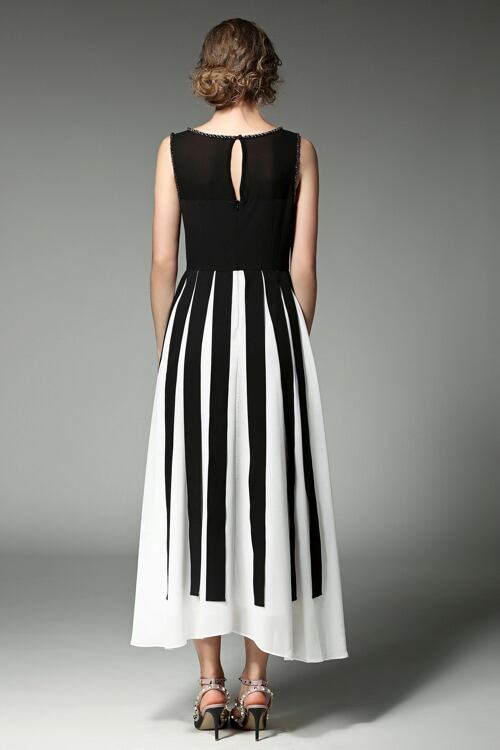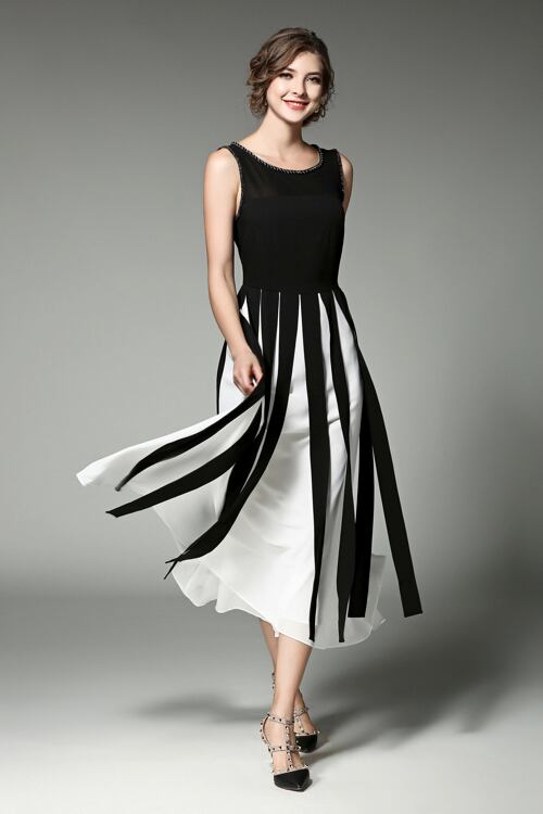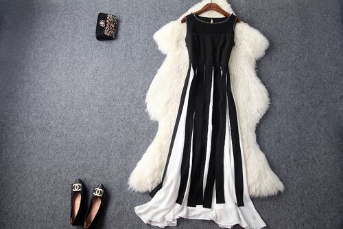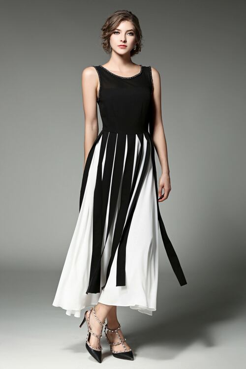 「大特価」 新作 人気商品♪バイカラー ノースリーブ ドレスT6596
