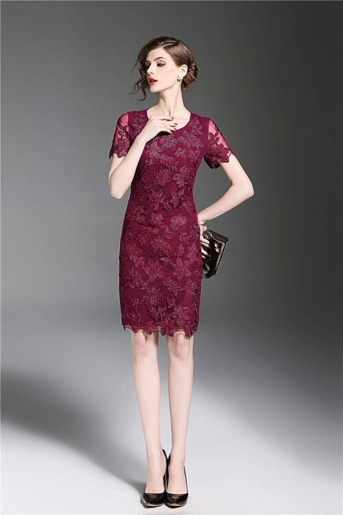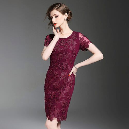 「大特価」 上品 半袖 刺繍 結婚式に 二次会 パーティー ドレスD005
