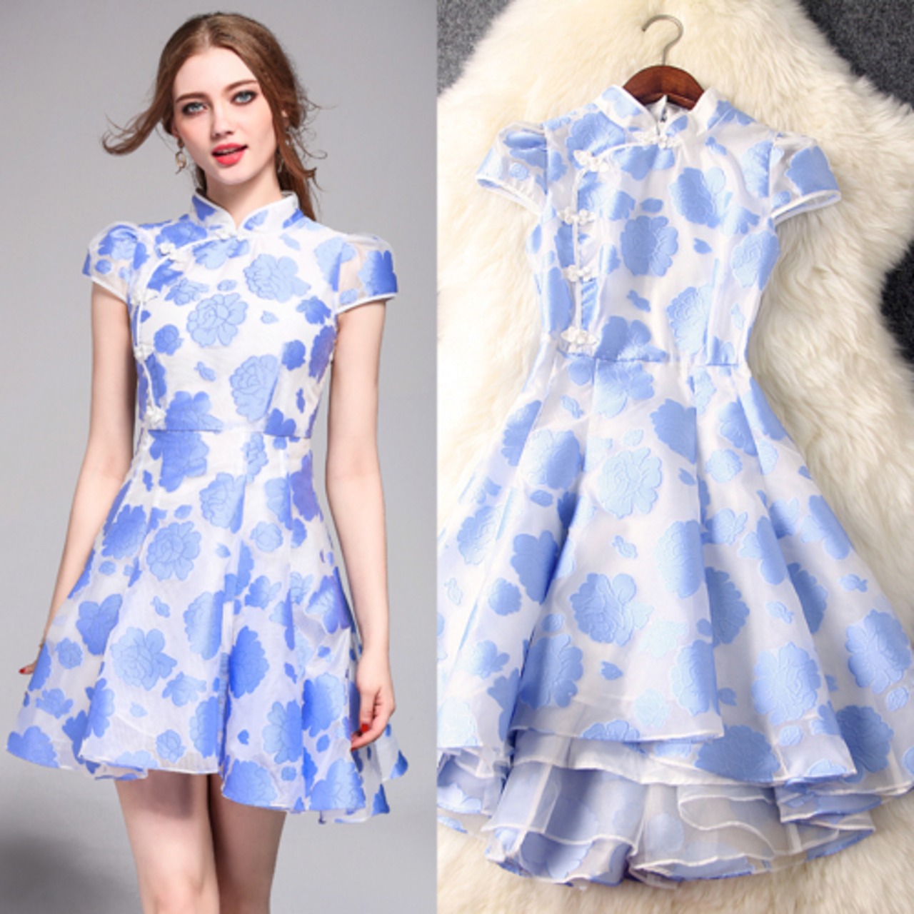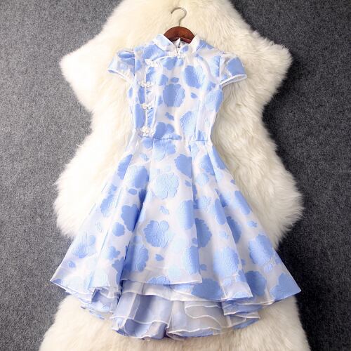 「大特価」 おしゃれ アシメドリー ジャカード ワンピースT6697