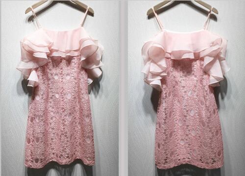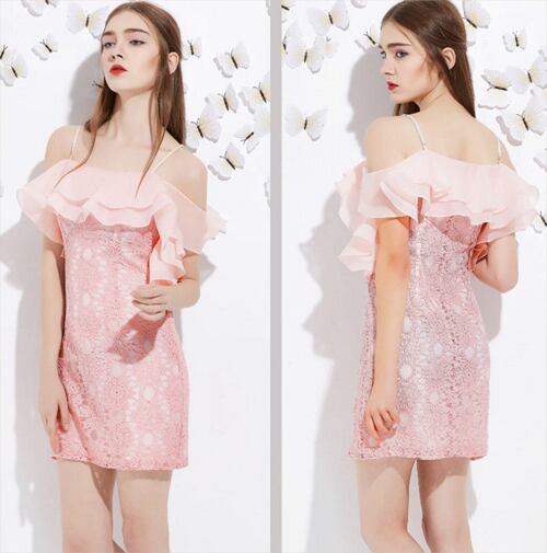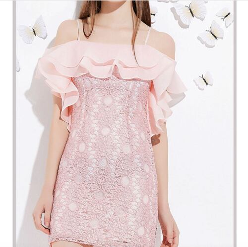 「大特価」 キュート レース フリル オフショルダー 結婚式ドレスp2940