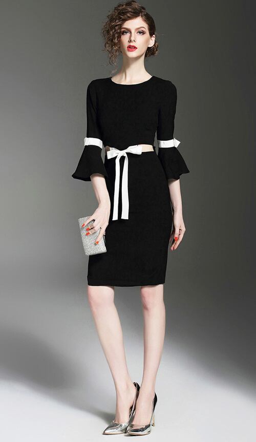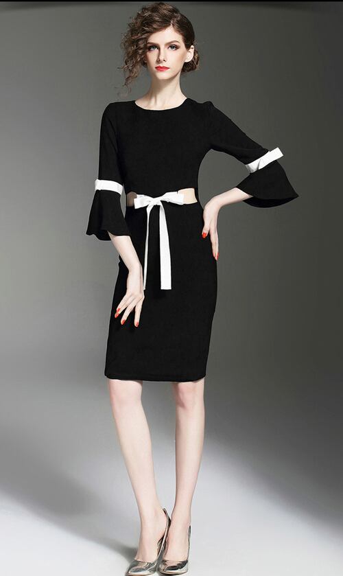 「大特価」 上品 バイカラー リボン 結婚式 ワンピースp3076