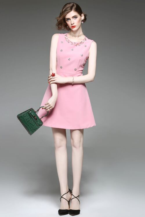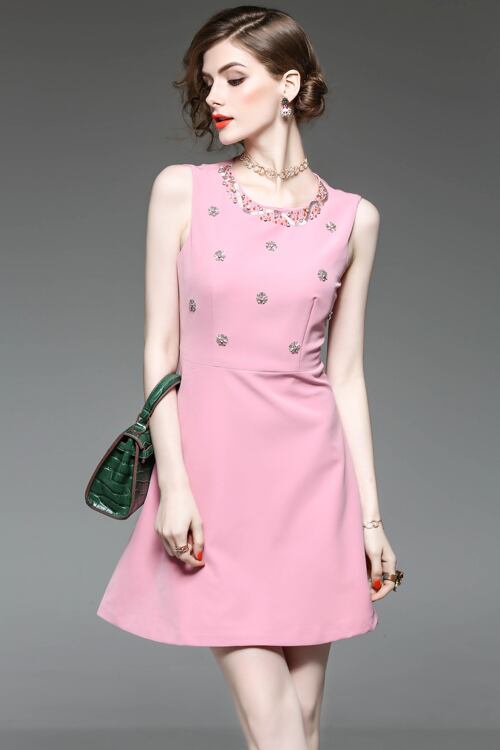 「大特価」 おしゃれ ノースリーブ ビジュー 結婚式 パーティー ドレス