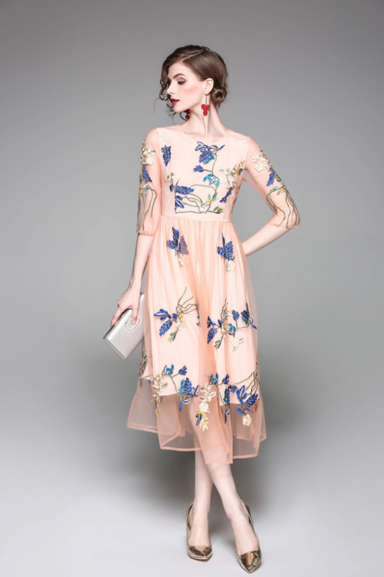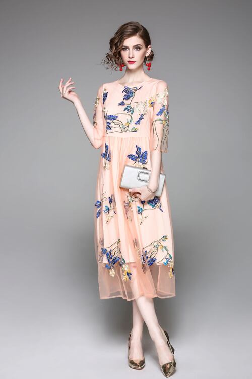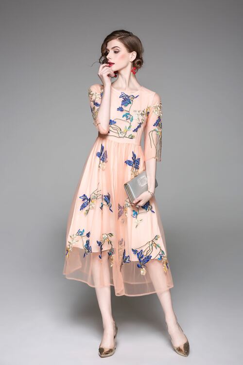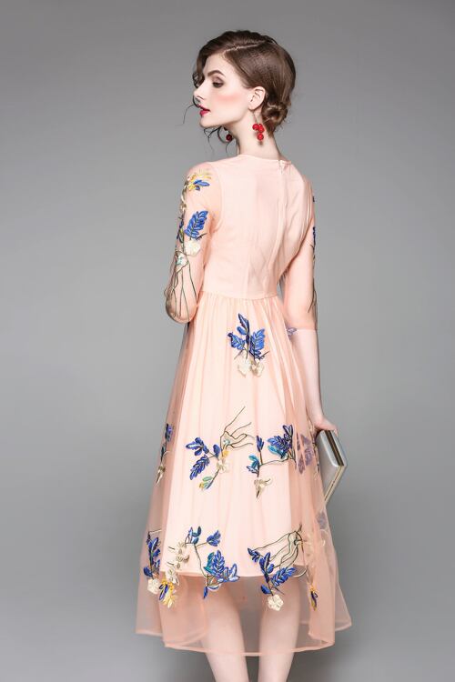 「大特価」 新作♪上品 刺繍 7分袖 スリム パーティー ロングドレス