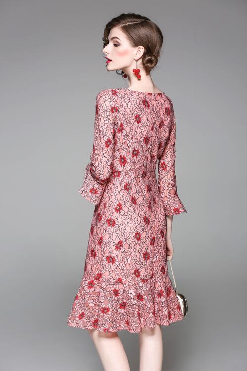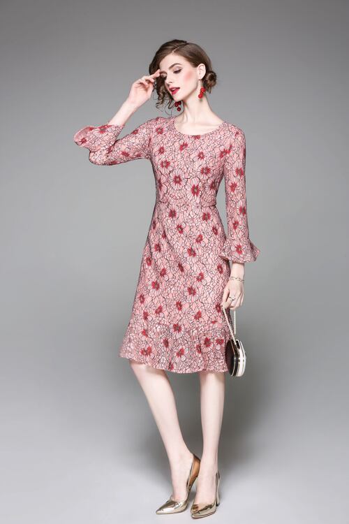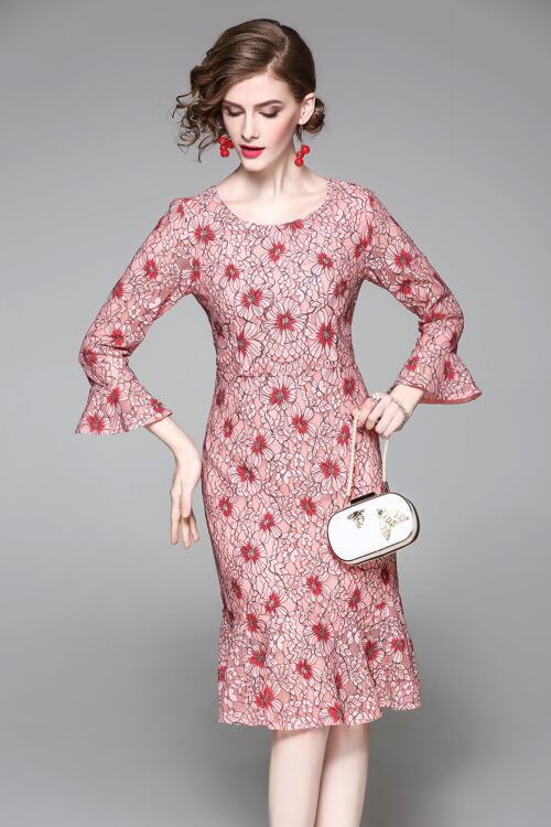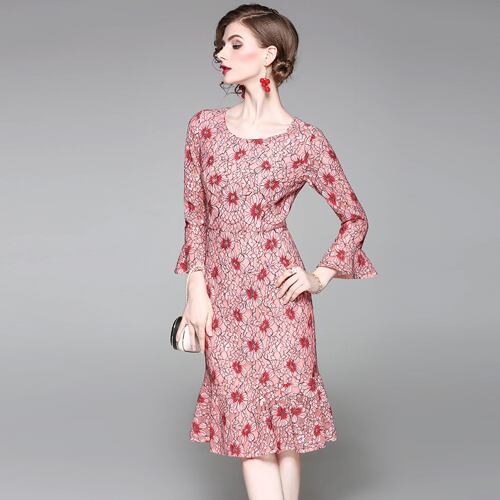 「大特価」 上品 レース フレア スリム 結婚式 パーティー ドレス