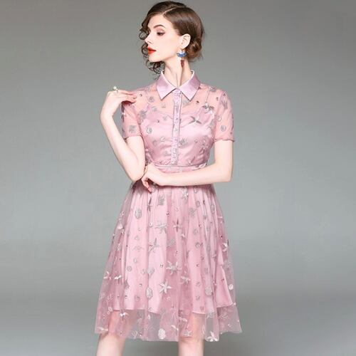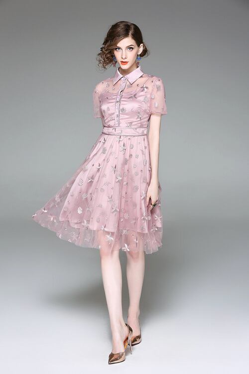 「大特価」 上品 半袖チュール 刺繍 結婚式 パーティー ドレスB0364