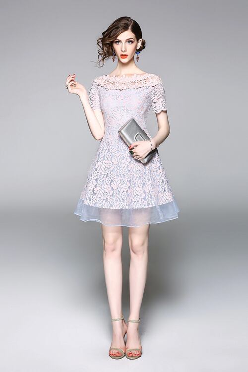 「大特価」 キュート レース 切替 結婚式 お呼ばれ パーティー ドレス