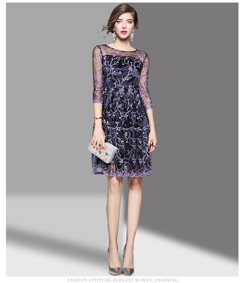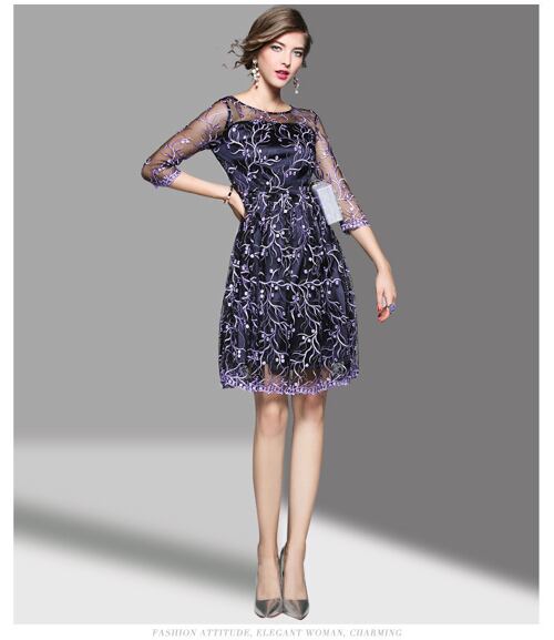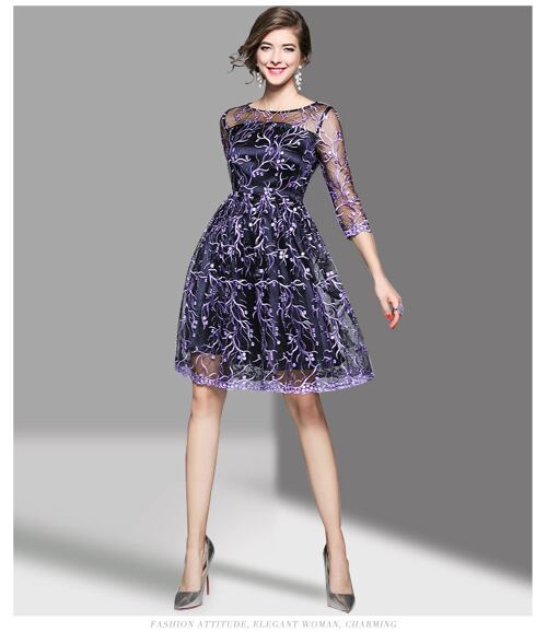 「大特価」 上品 刺繍 7分袖 結婚式 二次会 パーティードレス