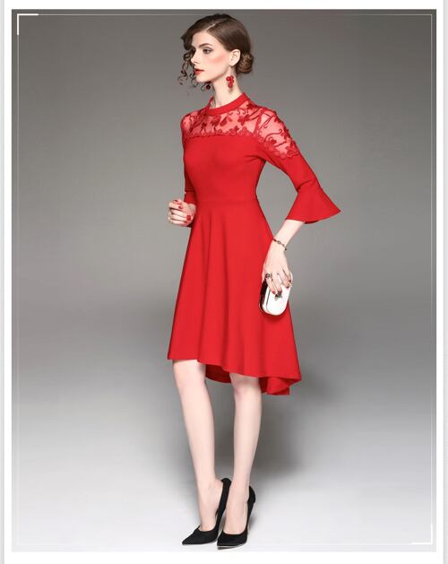 「大特価」 キュート 切替 刺繍 3色 結婚式 二次会 お呼ばれ ドレス