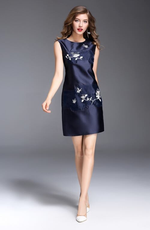 「大特価」 上品ノースリーブ ビーズ 刺繍 2色結婚式 お呼ばれ ドレス