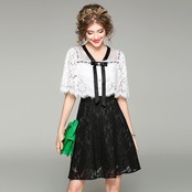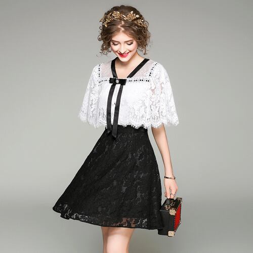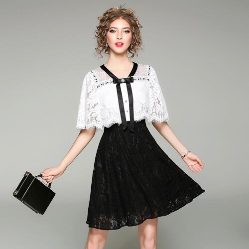 「大特価」 上品 総レース バイカラー リボン 結婚式 お呼ばれ ドレス