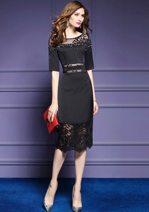 「大特価」 上品 半袖 レース 切替 ビーズ 結婚式 二次会 ドレス