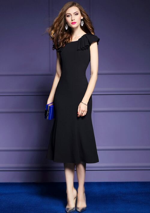 「大特価」 新作 上品 ブラック ミディ丈 スリム 結婚式 二次会ドレス