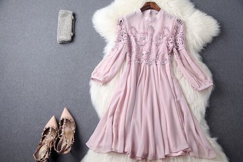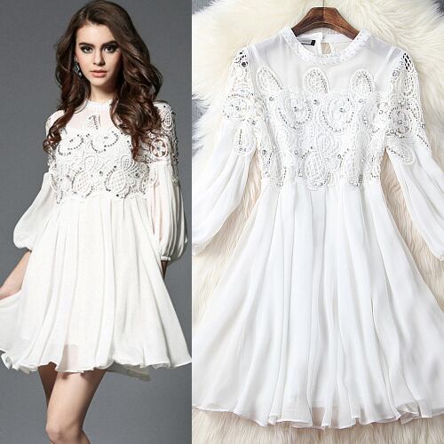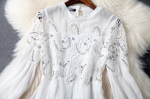 「大特価」 SS新作♪上質 レースシフォン切替 ビジュー3色ワンピースp2002
