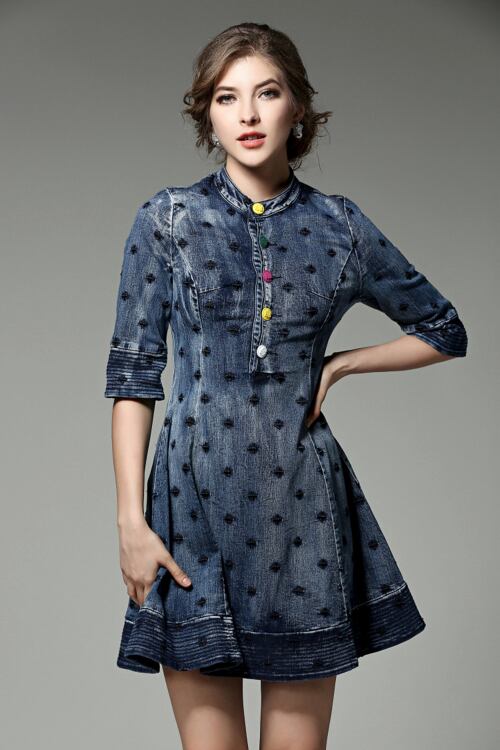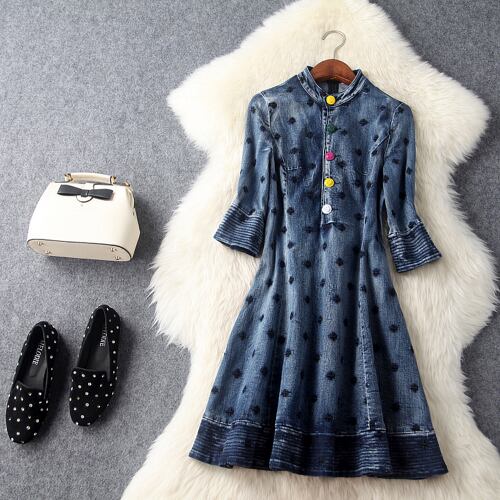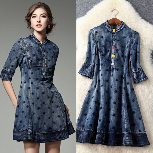 「大特価」 新作♪ 人気 デニム 刺繍 スリム ワンピースT6455