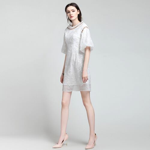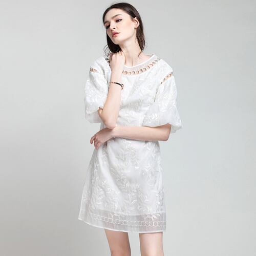 「大特価」 新作♪ 刺繍 パフスリーブ 2色 ワンピース76603