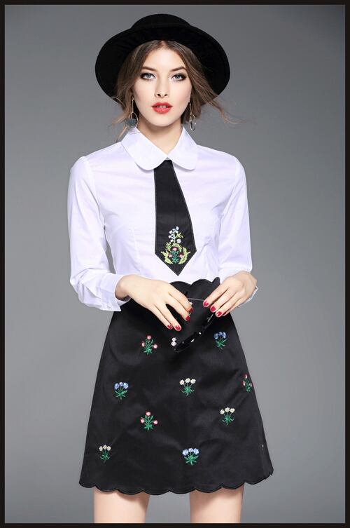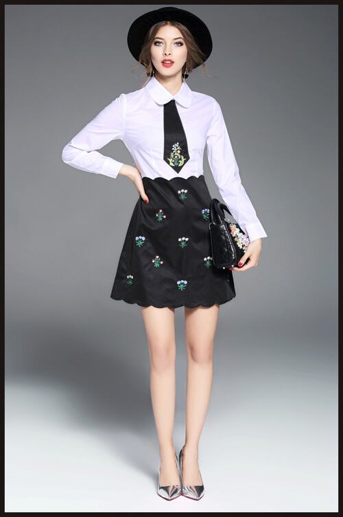 「大特価」 新作♪キュート シャツ風 刺繍 切替 ワンピースp2431