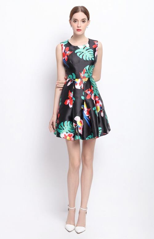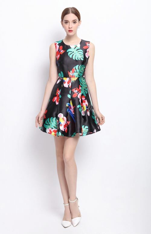 「大特価」 新作♪キュート ノースリーブ プリント ドレスA0038