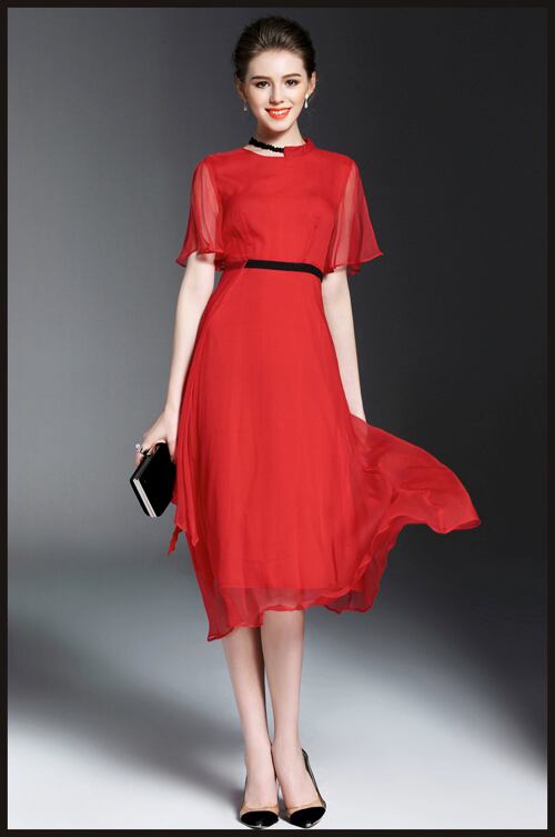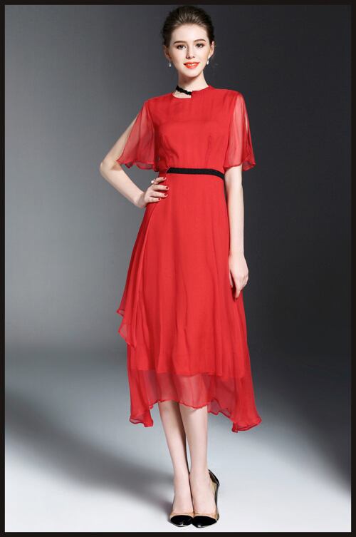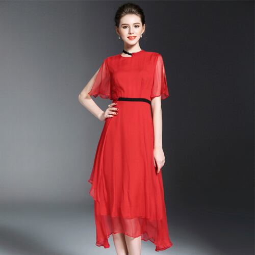 「大特価」 新作♪袖付き バイカラー ミディ丈 ワンピースp2541