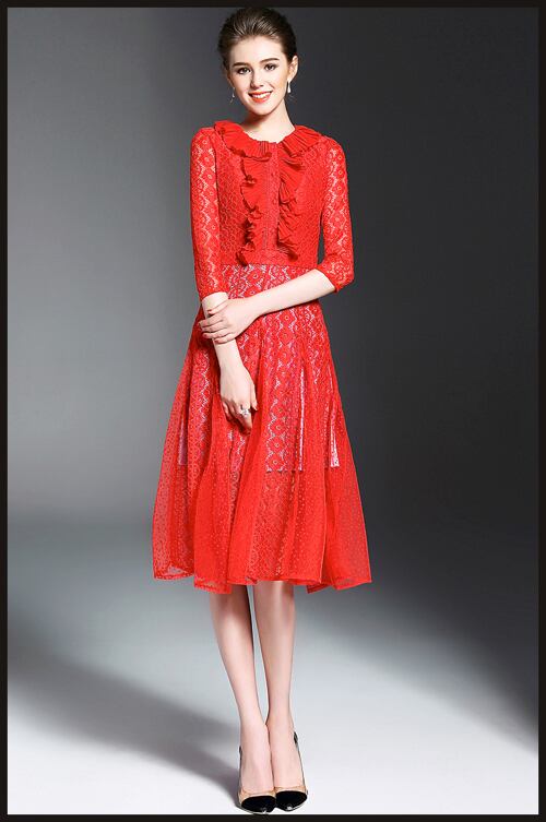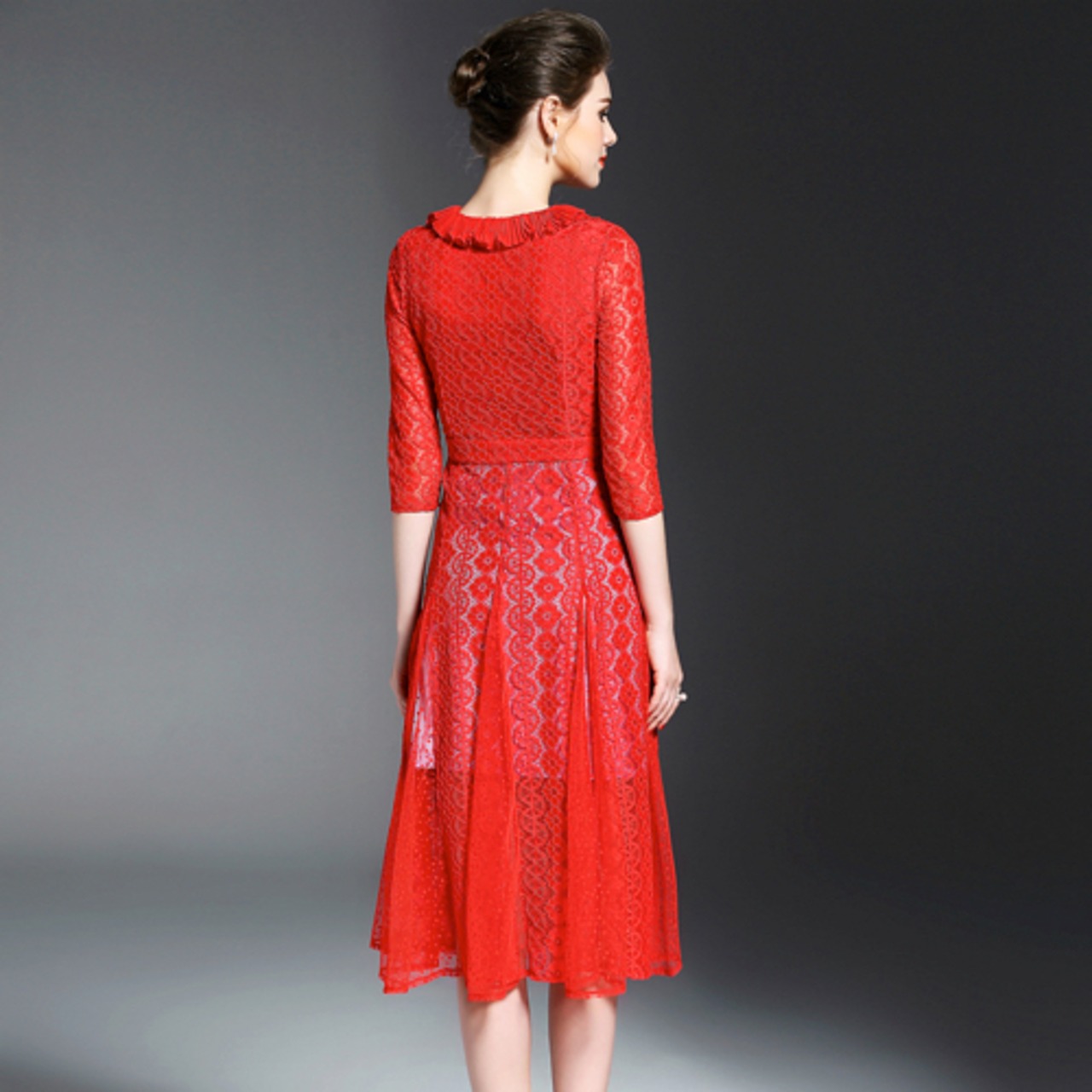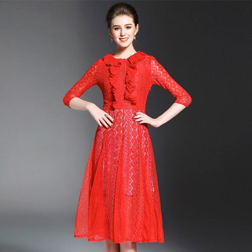 「大特価」 新作♪総レース フリル 7分袖 ワンピースp2545