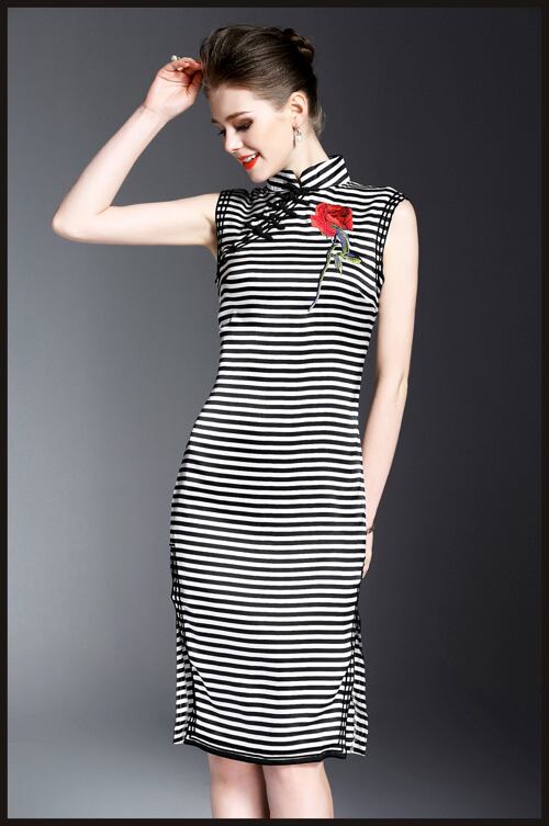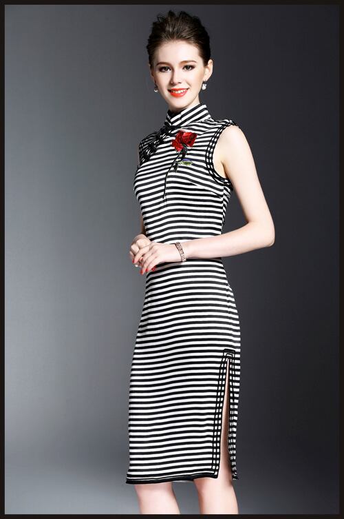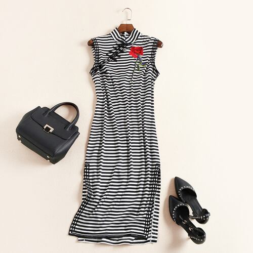 「大特価」 新作♪エレガンス ノースリーブ ストライプ ワンピースp2561