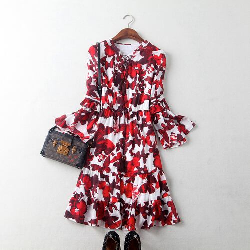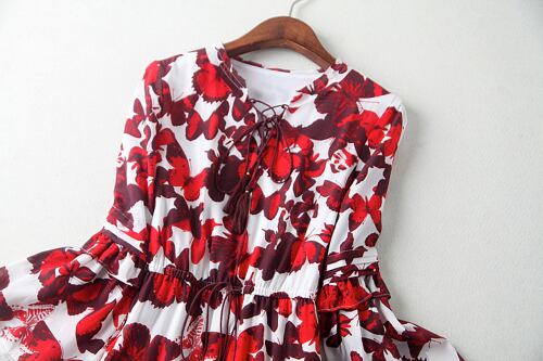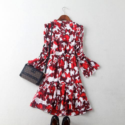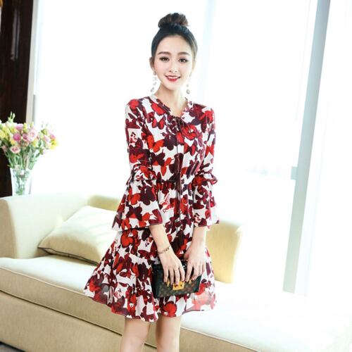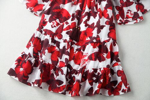 「大特価」 新作♪キュート プリント 7分袖 フリル ワンピースT6503