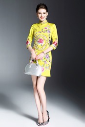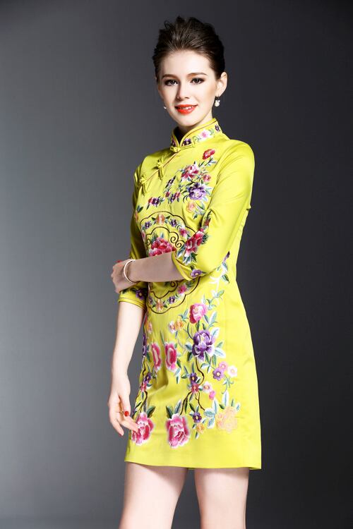 「大特価」 新作♪上品 チャイナドレス風 刺繍 2色 ワンピースp2621