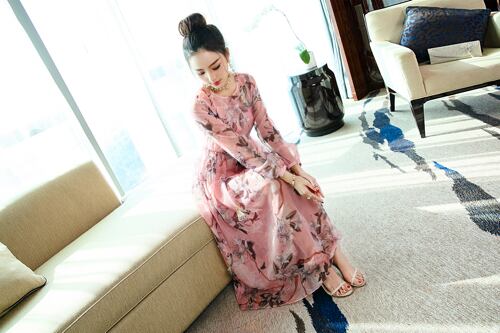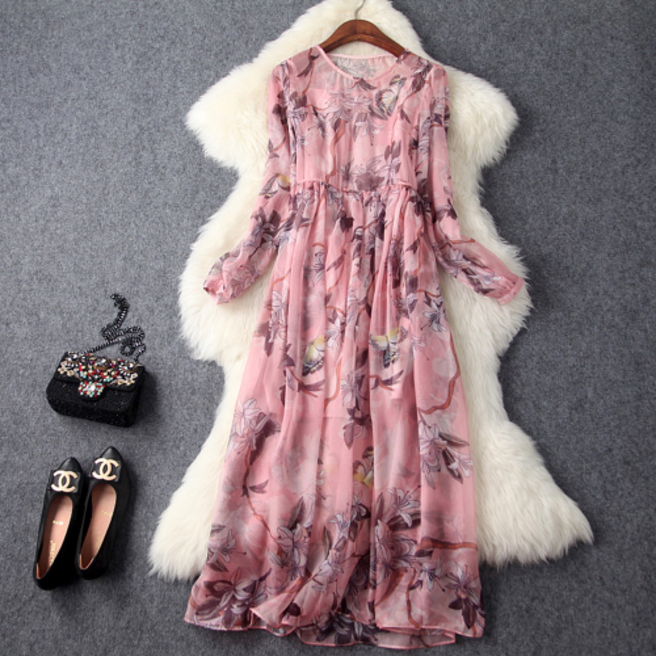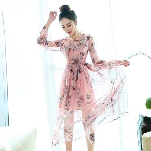 「大特価」 新作♪キュート シフォン プリント ワンピースT6580